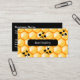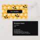 Tarjetas de presentación con tema de miel de abeja con un patrón gráfico de panal de abeja en el fondo y abejas en la parte delantera con tus datos de contacto en la parte posterior. Funciona como tarjeta de presentación para un apicultor, servicios de control de plagas de eliminación de abejas o productos relacionados con la miel.