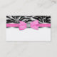 Plantilla de tarjeta de presentación con elegante lazo y cinta rosa intenso. Este bonito diseño de tarjeta de presentación con cebra rosa intenso se personaliza fácilmente simplemente eligiendo el botón "¡Personalízalo!" para comenzar a agregar los detalles de su evento, estilo de fuente, tamaño y color de la fuente y redacción. Tenga en cuenta que todos los stickers, tarjetas y diseños de invitaciones que encontrará en Zazzle son gráficos impresos sin joyas, lazos, partes o piezas en relieve, grabadas o añadidas.