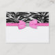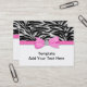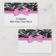 Elegante tarjeta de presentación con cinta y lazo rosa. Este diseño de tarjeta de presentación de cebra rosa es fácilmente personalizable simplemente eligiendo el botón "¡Personalízalo!" para comenzar a agregar los detalles de su evento, estilo de fuente, tamaño y color de la fuente, y redacción. Tenga en cuenta que todos los stickers, tarjetas y diseños de invitaciones que encontrará en Zazzle son gráficos impresos sin joyas reales, lazos, partes o piezas en relieve, estampados o agregados.