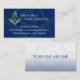 Aquí hay algunas tarjetas de visita masónicas azul marino y oro que puedes personalizar. Esta plantilla de tarjeta de visita personalizado para masones freemasons tiene un cuadrado oro único y moderno y un símbolo de brújula en la parte delantera. En la parte trasera de esta tarjeta de doble cara está la masona diciendo: "Ser uno pide uno". Los elementos gráficos y de texto de estas tarjetas de visita se pueden personalizar, y se imprimen en un material de tarjetas de calidad para que se sienta orgulloso de repartirlas en eventos de hospedaje en la fraternidad o en cualquier otro lugar. Categoría: masonería. Colores: azul marino, dorado y blanco.
