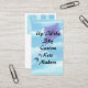 Estas tarjetas de visita están diseñadas para diseñadores y diseñadores de cometas personalizados. El diseño de fondo muestra mi pintura de una cometa morada con un patrón de diamante púrpura, con las pulseras fluyendo desde los lados inferiores de la cometa y las corbatas en la cuerda de la cometa. La cometa está retratada frente a un cielo azul con nubes blancas. Rellene el nombre de su empresa e información sobre los formularios de plantilla proporcionados. Gracias por comprar CherylsArt en Zazzle.