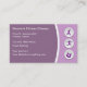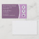 Plantilla de tarjeta de visita para entrenador personal de mujeres, diseñada en hermosos tonos violetas con tres emblemas de aptitud. Personalizar este diseño en línea para un entrenador de fitness o gimnasio para mujeres.