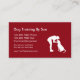 Plantilla de tarjeta de visita para un entrenador de perros o clases de obediencia. Incluye la imagen de un profesional de cuidado de mascotas y un perro trabajando juntos.
