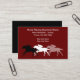 Las tarjetas de negocios de temas de carreras de caballos Guay diseñadas con un gráfico de tres caballos de carreras con Jockeys y un diseño sencillo en una plantilla editable que puede personalizar en línea. Diseñado para un establo de caballos, un equipo de carreras, o un entrenador de carreras de caballos, o Jockey.