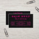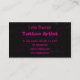 Tatuaje Tribal © Sunny Mars Designs. Esta tarjeta de visita de artista de tatuajes presenta un diseño de arte de tatuajes tribales en negro y rosa sobre un fondo gris.