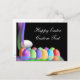 Pintura original de KLN - Huevos pintados con gusto rodeados de una franja de color. Bonito rosa pastel, azul, verde, dorado, turquesa, violeta, roja y naranja, todo ello decorado con un fondo negro con acentos blancos adicionales. Una perfecta tarjeta postal de vacaciones de Pascua para alguien especial.