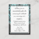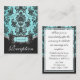 Tarjetas de recepción de la boda azul y negro Damask - Coincide con la suite completa que se encuentra debajo en esta página. Coloque estas tarjetas con sus tarjetas de invitación y tarjetas RSVP para informar a sus huéspedes de los detalles de la recepción. Personalización de las tarjetas de recepción Haga clic en el botón naranja del personalizar situado debajo de la demo de la tarjeta de recepción para cambiar el tipo de letra, el color del texto o el tamaño que desee. Si está satisfecho con el estilo de fuente, el color del texto y los tamaños, puede utilizar la característica de personalización a la derecha de la demostración para cambiar la información de demostración a los detalles personales de su boda. Sólo asegúrese de ver la demo después de cambiar los detalles (la demo cambiará automáticamente después de haber realizado cambios en el texto, el tamaño o los colores del tipo de letra). La demostración le dará una prueba de su tarjeta después de realizar los cambios. Haga clic en el botón de la lupa que hay encima de la demo de la tarjeta de recepción de bodas para obtener una prueba completa. También puede hacer clic en cada imagen (frontal y posterior) para desproteger cada lado después de realizar los cambios. Otro consejo es hacer clic en el botón de diseño sobre la demo de la tarjeta para ampliar el alcance y obtener una mejor previsualización de los colores y la decoración del diseño. 5 x 7 Invitaciones a la Boda Azul Tu propio Personalizado de fotos 5 x 7 Invitaciones a la Boda Azul Salven en el Poescenario—Tiffany Boda de Damasco de la Candelabro Azul y Negro Guardar las Postales de la Fecha