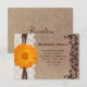 Esta tarjeta de recepción es perfecta para cualquier boda rústica de campo. Cuenta con un fondo de papel vintage rústico con una impresión de florituras ornamentales y un encaje impreso y una cinta de cordel en el lado con una flor de margarita naranja brillante. Perfecta para cualquier boda de campo o granero. Solo tienes que añadir los detalles de la recepción a la tarjeta. El cordel y el encaje son solo diseños impresos. No es encaje real, ni cordel.