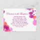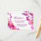 Tarjetas de recepción de boda de acuarela púrpura rosa con hermosos diseños abstractos de salpicaduras de acuarela coloridas con varios tonos de púrpura, rosa y coral. Un lado tiene información de recepción y el otro lado tiene direcciones. También podría usar esto para otras tarjetas de inclusión como alojamiento. Artículos del conjunto de boda a juego: Tarjetas de recepción, tarjetas de inclusión, tarjetas de dirección, acuarela, abstracto, moderno, de moda