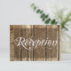 Esta tarjeta de recepción de boda tiene un fondo de madera de granero antiguo vintage. Ideal para bodas campestres, bodas en graneros y bodas de vaquero. Simplemente agregue los detalles de la recepción en la parte posterior de la tarjeta para una inclusión separada con sus anuncios. Elija entre 10 tipos de papel diferentes y esquinas cuadradas o redondeadas.
