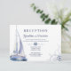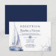 El diseño azul marino presenta un elegante yate de vela de acuarela para su boda náutica. Puede personalizar fácilmente sus detalles simplemente presionando el botón "personalizar" para su boda perfecta.