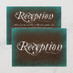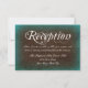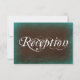 Esta tarjeta de recepción de boda tiene un fondo turquesa y marrón antiguo vintage anticuado. Dependiendo del tipo de papel ordenado, el color puede aparecer más verde aqua que azul turquesa. Ideal para bodas campestres, bodas en un granero y bodas de vaquero. Elija entre esquinas cuadradas o redondeadas. Simplemente agregue los detalles de su recepción en el reverso de la tarjeta.