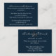 Tarjetas de recepción y alojamiento con inserción en blanco y azul, que coinciden con la suite boda que se encuentra más abajo en esta página. Utilice estas tarjetas para informar a sus huéspedes de cualquier información especial sobre bodas y alojamientos cercanos para que sus viajes a su gran día sean sencillos. El material de la tarjeta se establece en básico; sin embargo, puede cambiar el material a lino, metálico, crema y cáscara de huevo bajo la opción 2 — debajo de la característica de personalización). Las tarjetas se venden en juegos de 100. Productos que coinciden a continuación: Invitaciones a Bodas Náuticas Azul y Blanca de la Marina - Invitaciones a Bodas Náuticas Azules y Blancas Rectangulares 5x7 - Cuadrado 5.25x5.25 Bodas Náuticas Azules y Blancas de la Marina - Para Recepción Buffet: Bodas Náuticas Azules y Blancas - Para 2 Cenas Elecciones: las tarjetas RSVP de la boda náutica azul y blanca - Para 3 cenas recepciones: (la vista previa de abajo es la vista frontal de las tarjetas) Tarjetas Navy Blue & White Insert - (para proporcionar la recepción de la boda y los detalles del alojamiento a sus invitados; paquete de 100) Boda náutica azul de la marina Guardar las tarjetas de fecha - Personalizar de tamaño 5x7 para su alojamiento Foto propia - Boda Náutica Azul de la Marina Salven las tarjetas de fecha - Personalizar de tamaño 5x7 a su propia foto - Programas de ceremonias de Boda Náutico Azul y Blanco de la Marina - 8,5 x 11tamaño Tarjetas de agradecimiento náuticas azules y blancas de la Marina - 2 tarjetas de Boda Náutico Azul y Blanco de la Marina a dos lados