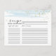 ¡Estas tarjetas de la receta de la ducha de novia azules y doradas son una buena manera de ofrecer a la futura novia todas las recetas que necesitará como nueva esposa! Lo bueno de estas tarjetas de doble cara es que hay mucho espacio para recetas más largas. Simplemente envíe estas tarjetas de recetas en blanco con las invitaciones a la ducha de novia y pida a sus invitados que lleven las tarjetas rellenas con ellas a la ducha. El lujoso diseño presenta una textura de color azul claro con un toque de purpurina falso dorado y un moderno tipo de letra de escritura caligráfica. Nota: Este diseño no tiene purpurina de oro real. Es un gráfico de alta calidad hecho para parecerse al brillo dorado.