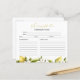 Tarjetas de Recetas para Desayuno Nupcial de Limón