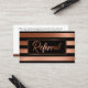 Este diseño vívido presenta un llamativo Relieve metalizado de cobre falso y negrita negra, con rayas horizontales en el frente. El centro está enmascarado por un rectángulo negro con bordes dobles de cobre que realza el diseño sofisticado. En el centro de la insignia, usando un tipo de letra de escritura moderno y bonito, hay una superposición tipográfica que dice "Remisión". Esta capa de texto gráfico fue embellecida con el mismo efecto de cobre que usé en las franjas y bordes. En la parte posterior he configurado todos los campos de plantilla que necesitará para ofrecer los detalles y términos a sus clientes. Utilice los campos proporcionados para agregar sus propios detalles y realice los cambios necesarios en la redacción. También puede hacer clic en el personalizar si desea cambiar las fuentes, tamaños o reposiciones de cualquier elemento. // Ideal para propietarios de salones de belleza, estilistas de cabello, esteticistas, manicuristas y técnicos de uñas, maquilladores, masajistas, entrenadores personales, y muchos otros en industrias de sanación y servicios personales que aprecian honrar referencias de negocios. // Por favor, no dude en ponerse en contacto si tiene solicitudes especiales o necesita ayuda para personalizar. // Diseñado por Melody Watson para la Muserie de Papel.