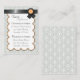 Cómodas tarjetas de información de 2,5" x 3,5" para que los huéspedes de su boda puedan llevar el día de su matrimonio. Hermoso boda con un patrón de damasco blanco y gris de cuero y un diseño de cinta negra con naranja en la parte superior. Se adaptan fácilmente a la mayoría de bolsillos y bolsillos para hombres.