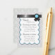 Cómodas tarjetas de información de 2,5" x 3,5" para que los huéspedes de su boda puedan llevar el día de su matrimonio. Hermoso boda con un patrón de damasco blanco y gris de cuero y un diseño de cinta negra con azul acuático en la parte superior. Se adaptan fácilmente a la mayoría de bolsillos y bolsillos para hombres.