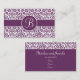 Dé estas tarjetas de registro de regalos de boda a su familia y amigos para hacerles saber en dónde está registrado. Estas tarjetas presentan un patrón de damasco blanco y púrpura con un monograma.