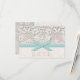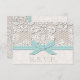 Las tarjetas de respuesta de boda de encaje vintage y de encaje antiguo de estilo bonito y estilo ladylike con un diseño de cinta de cosido de contraste de color azul y agua impreso y un sutil coco cremoso de fondo blanco de damasco. Diseñado por Chrissy H. Studios, LLC. Todos Los Derechos Reservados.