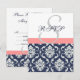 Tarjetas de respuesta de boda con damasco y monograma púrpura Monogram.com y WhiteWhimsicalWeddings.blogspot.com. "Personalízalo" con la fecha de respuesta, monograma y colores de la boda. Se ajusta a las tarjetas de invitación de boda de 5 x 7 pulgadas disponibles en la galería.