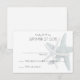 Tarjetas de respuesta sencillas de estrella de mar. Blancas con texto impreso en negro con un espacio para que los invitados incluyan el número de personas en su grupo. Dos grandes estrellas de mar decoran el fondo, con una línea para los nombres. La papelería de paleta neutra combina con cualquier tema de boda de playa.