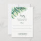 Estas tarjetas de respuesta boda tienen helechos de color verde. La parte posterior de las cartas tiene un diseño de helecho con estampado. Puede cambiar el color y el estilo del tipo de letra, así como el color de fondo haciendo clic en el botón "Personalizar". Se han elegido esquinas redondeadas para este diseño, pero si lo prefiere puede elegir otras esquinas cuadradas. También hay una buena variedad de opciones de papel para elegir. Estas tarjetas de respuesta de boda de helecho forman parte de una colección que incluye una amplia gama de artículos de papelería boda coincidentes, como invitaciones a bodas, tarjetas de información, etiquetas de direcciones, pegatinas, sellos postales, sobres, cajas de favores, tarjetas de pozo deseables, programas, menús y mucho más. Visite la página de la colección en nuestra tienda para ver el rango completo.