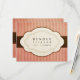 Esta tarjeta de respuesta a la invitación a la boda presenta un fondo rosado de fresa a rayas en el que una cinta marrón de chocolate oscuro lleva un emblema blanco con bordes de vieira. Esta forma curvada, simétrica, que parece un corte de papel, enmarca las palabras "Por favor, responda [por - fecha de personalizable]" con un guión rápido que florece en el frente. En la parte de atrás hay una línea para que el huésped escriba su nombre y compruebe si acepta o rechaza, así como el número de clientes que acuden. El diseño tiene un toque antiguo, vintage y angustioso que se completa con la elegancia sencilla y anticuada. Explore la suite de diseño Vintage Charm... Crema azul Sage Green Lilac Purple Strawberry Rosa Golden Yellow Chocolate & Strawberry Pink Chocolate Blue Ivory & Eggplant Brillante Marina Roja y Azul Azul Azul Dusky Purple ¿No encuentras tu color exacto? Sólo envíame un correo electrónico: colleen@foreverlogos.com - ¡Lo haré, sólo por ti!