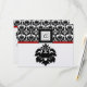 Invitaciones a la boda en monograma de damasco rojo y negro