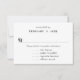 Tarjetas de respuesta RSVP en blanco y negro con selección de plato principal. *Tenga en cuenta que "Amablemente" está mal escrito y debe corregirse antes de realizar el pedido. Utilice el área de plantilla para hacerlo.