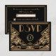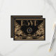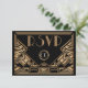 Una tarjeta de respuesta de RSVP de boda elegante y audaz, de estilo vintage con un tema de "Gran Gatsby" de los años veinte en tonos negros y dorados. Un fondo negro resalta el borde intrincado de estilo Art Deco en tonos beige dorados. Se han seleccionado fuentes decorativas de estilo de época para completar el look.