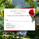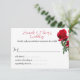 Tarjetas RSVP de rosas rojas para comprar o descargar. Pídele a los invitados que respondan a una invitación de boda en línea. Incluya una dirección URL del sitio web del boda y hágalo fácil mientras ahorra dinero.