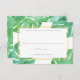Tarjetas de respuesta doradas con tema tropical, parte de nuestra colección de papelería para bodas con piñas tropicales. Con hojas tropicales de acuarela en el fondo y acentos de lámina dorada falsa.