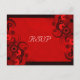 © Sunny Mars Designs - Floral Hibiscus: Dark Red on Red Wedding RSVP Cards - Personalizable de moda, moderno, elegante tarjetas de respuesta RSVP de boda con elegante diseño floral de rojo oscuro, rojo oscuro, rojo oscuro, burdeos, rubí o hibiscos tropicales de marrón sobre un brillante fondo rojo.