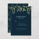 Tarjetas de respuesta elegantes para coordinar con nuestra colección de boda de hojas doradas sobre azul marino con una línea adicional para cualquier requisito dietético. Artículos coincidentes disponibles en esta colección.
