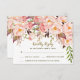 Tarjetas de respuesta para bodas con peonía rosa y dorado antiguo: presenta un hermoso diseño de texto de oro y bronce impreso decorado con peonías, rosas y vegetación.
