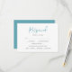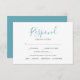Diseñadas para coordinar con mi conjunto de papelería de boda de colores florales costeros, esta tarjeta de respuesta RSVP blanca y azul turquesa presenta la información de respuesta en una tipografía de letra manuscrita minimalista. Se proporciona espacio para que los invitados agreguen su información de RSVP y opciones simples de elección de comida. La tarjeta se revierte a un color azul verdoso complementario. Para ver papelería de boda de playa a juego, visite www.zazzle.com/dotellabelle