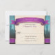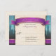 Cartas de respuesta RSVP de boda de cuento de hadas diseñadas con un cartel morado y dorado y las palabras "El favor de una respuesta...", castillos a lo lejos sobre un gradiente azul a marrón, y detalles de tu boda RSVP sobre un viejo y machacado ilustracion de textura de papel de época beige. Estas tarjetas de respuesta de RSVP fueron diseñadas para que coincidieran: