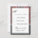 RSVP (Tarjetas de respuesta) de la boda de la mordaza roja y negra de Apple: coincide con las invitaciones y otros artículos de papel de boda que se encuentran abajo en esta página. Estas tarjetas RSVP tienen una lámpara de araña de damasco negra en la parte superior sobre una sombra de color rojo manzana. La parte superior e inferior están divididas por una banda decorativa ornamental con remolinos negros y plateados. La parte inferior cuenta con un diseño de almohadas de lujo impreso para añadir un toque. La parte posterior presenta el mismo diseño con un cuadro de texto blanco que permite a los gráficos recorrer a través. Estas invitaciones a bodas de damasco rojo/negro se configuran en un material de tarjeta básico de alta calidad; sin embargo, puede cambiar el material a lino, fieltro (grabado en relieve), reciclado y varios matices metálicos si desea bajo el número 2 (elija su estilo, tamaño y tipo de papel) debajo del botón naranja añadir al carrito. También se muestra en esta opción una lista de los costes adicionales de un stock de tarjeta más avanzado. Cada invitación incluye un sobre blanco. Consejos para personalizar las tarjetas RSVP de tu boda Haga clic en el botón naranja del personalizar situado debajo de la demostración de arriba para cambiar el tipo de letra, el color del texto o el tamaño que prefiera. Si está satisfecho con el estilo de fuente, el color del texto y los tamaños, puede utilizar la característica de personalización a la derecha de la demostración para cambiar la información de demostración a los detalles personales de su boda. Sólo asegúrese de ver la demo después de cambiar los detalles (la demo cambiará automáticamente después de haber realizado cambios en el texto, el tamaño o los colores del tipo de letra). La demostración le proporcionará una prueba de sus confirmaciones de asistencia después de realizar los cambios. Haga clic en el botón de la lupa encima de la demostración para obtener una prueba de vista completa. También puede hacer clic en cada imagen (frontal y posterior) para desproteger cada lado después de realizar los cambios. Otro consejo es hacer clic en el botón de diseño sobre la demo de invitación para ampliar el alcance para ver más detalles y obtener una mejor previsualización de los colores y la decoración del diseño. Asegúrese de comprobar cada lado de la demo de la tarjeta antes de añadir a su carrito para su salida siguiendo los consejos anteriores. Invitaciones de boda coincidentes: Boda de Damasco cuadrada con forma de rojo y negro invita a coincidir Guardar las postales de Boda de fecha