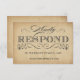 Tarjetas de respuesta de confirmación de asistencia en línea para bodas con tipografía vintage elegante. Fondo de pergamino antiguo envejecido con hermosas volutas, rollos y motivos florales victorianos del siglo XIX. Tipografía de escritura clásica con florituras mezclada con una fuente de estilo de imprenta retro - simple y sin adornos, sin borde. Perfecto para bodas tradicionales en la iglesia o bodas rústicas en el campo, fincas o jardines, pero con un toque moderno y sofisticado para la novia y el novio contemporáneos. La plantilla fácil de usar se puede modificar para bodas formales o semiformales. Haga clic en Personalizar para cambiar el estilo y tamaño de las fuentes.