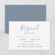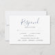 Diseñadas para coordinar con mi conjunto de papelería de boda de vegetación botánica, esta simple tarjeta de respuesta RSVP presenta la información de su respuesta en una tipografía de escritura caprichosa de moda. Se proporciona espacio para que los invitados agreguen su información de RSVP y opciones simples de elección de comida, incluyendo sin gluten. La tarjeta se revierte a un color azul polvoriento complementario. Para ver la papelería de boda a juego de Victoria Grigaliunas, visite www.zazzle.com/dotellabelle