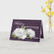 Elegantes rosas blancas con flor total en una tarjeta de aniversario de boda púrpura profunda con año personalizado. Personalice el año y el versículo interior en la plantilla proporcionada. Fotografía original y diseño de Anura Design Studio 2010.