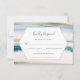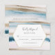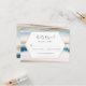 Elegantes tarjetas de RSVP para coordinar con nuestra colección de boda de acuarela azul y dorado, adecuadas para una boda de playa, con una línea adicional para cualquier requisito dietético que sus invitados puedan tener, así como texto adicional en la parte posterior que es opcional.