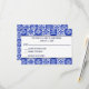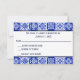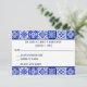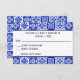 Azulejos españoles/mexicanos azules y blancos en la parte superior e inferior de la tarjeta y en la parte posterior.