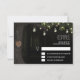Tarjetas de RSVP de boda con frasco de Mason + roble - presentan un fondo de silueta de bosque soñador con un gran roble ancestral que puedes cambiar las iniciales de demostración a las de tu elección. Este diseño también cuenta con luces de cuerda en la parte superior con frascos de Mason que dan la apariencia de un resplandor. Ver formas de cartulina y tipos de papel para actualizar si lo deseas.