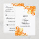 © Diseños Socialite. Hermosas espirales y florituras en esquina, en naranja y amarillo, tarjetas de respuesta de boda.