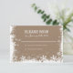 Esta invitación presenta un borde de copos de nieve contra un fondo rústico con un hermoso tipo. Perfecto para una ceremonia de boda de invierno. Estas tarjetas de RSVP son totalmente personalizables. Por favor, contácteme en 'sika_273@yahoo.com' si desea que la línea se expanda o las tarjetas en un color diferente. ¡Gracias por navegar!