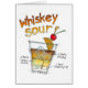 WHISKEY SOUR RECIPE COCKTAIL ART Un bello dibujo ilustrado de un Whiskey (Whisky) Sour en un clásico cóctel Rocks (Old Fashioned) señalando las medidas exactas para esta clásica Bebida agria de Whiskey, Jugo de Limón y Jarabe Simple (azúcar).
