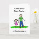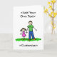 Padre e hija se dan la mano. La camisa del padre decía "papá" y la camisa de la hija decía "yo". Las figuras tienen el pelo de morena. Puedes agregar tu propio texto para crear un producto personalizado con tus propios nombres de familia para papá e hija o simplemente agregar tu propio título de "Papi es niña". Elige tus estilos de fuente y colores para un producto personalizado que hace un gran regalo de cumpleaños o Día del Padre.