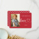 Hacerlo super lindo y fácil a este El día de San Valentín con tarjetas de San Valentín personalizadas en aula de fotos. La parte delantera de la mini carta tiene una foto y un texto. la parte trasera de la tarjeta tiene corazones blancos sobre un fondo rojo.